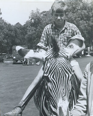 Young Jules on a Grevy's Zebra, Kenya 1962